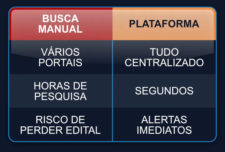 Nosso sistema monitora milhares de fontes públicas e permite que você encontre licitações em segundos usando apenas palavras-chave.
